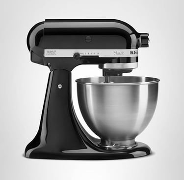 This KitchenAid stand mixer is built with strong metal construction and features 59 touchpoints around the bowl, making it great for super smooth and even mixing. It comes with a 4.5-quart stainless steel bowl that can handle big batches—up to 8 dozen cookies at once. The tilt-head design makes it easy to add ingredients, and the bowl and attachments are dishwasher-safe for quick cleanup. With 10 different speeds, you can do everything from gently stirring to whipping cream. It also works with over 10 optional attachments (sold separately), so you can make pasta, grind meat, create veggie noodles, and even make ice cream. This mixer is a kitchen essential because it makes cooking and baking way easier and faster. It’s powerful, super versatile, and can replace several other kitchen tools with its attachments. Whether you're baking cookies, making dough, or trying new recipes, this mixer saves time, adds convenience, and delivers consistent results—making it a great investment for any kitchen.
